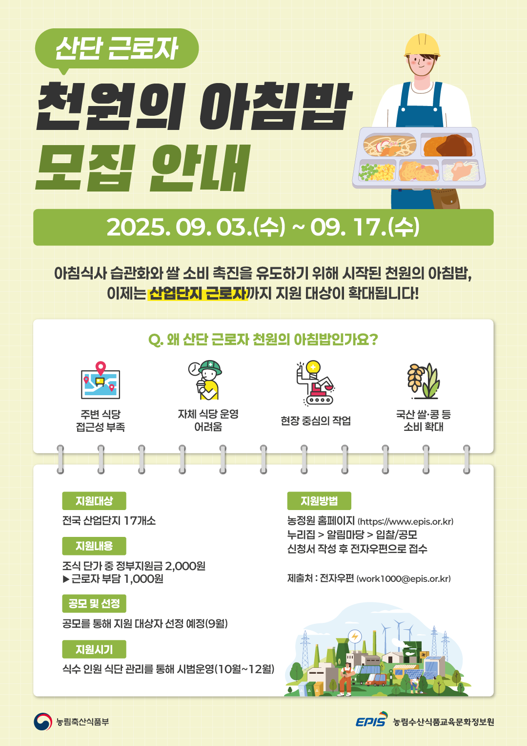 「2025년도 산단 근로자 천원의 아침밥 시범(파일럿) 사업」 참여기업 모집 공고