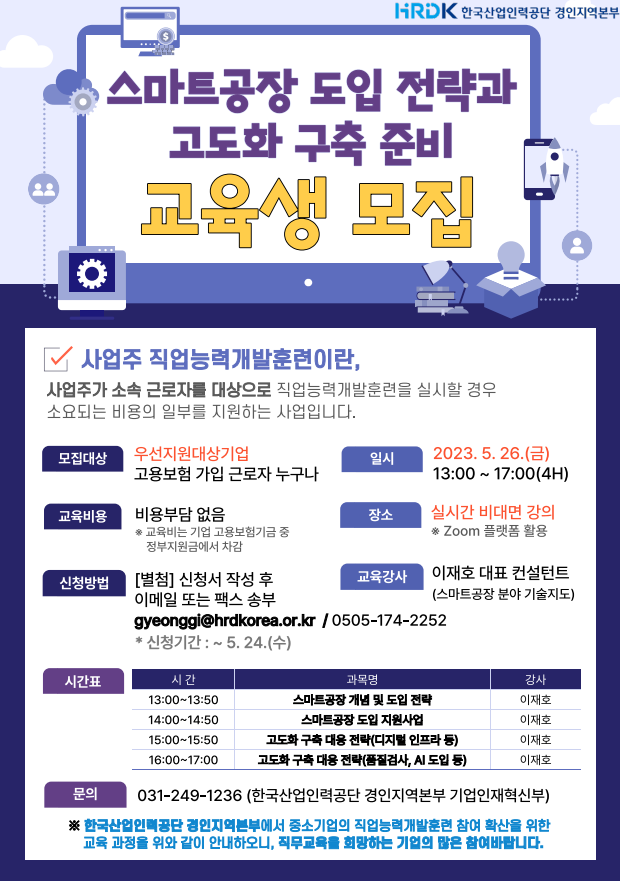 중소기업 실무 담당자를 위한「스마트공장 도입 전략 및 고도화 구축 준비」교육 과정