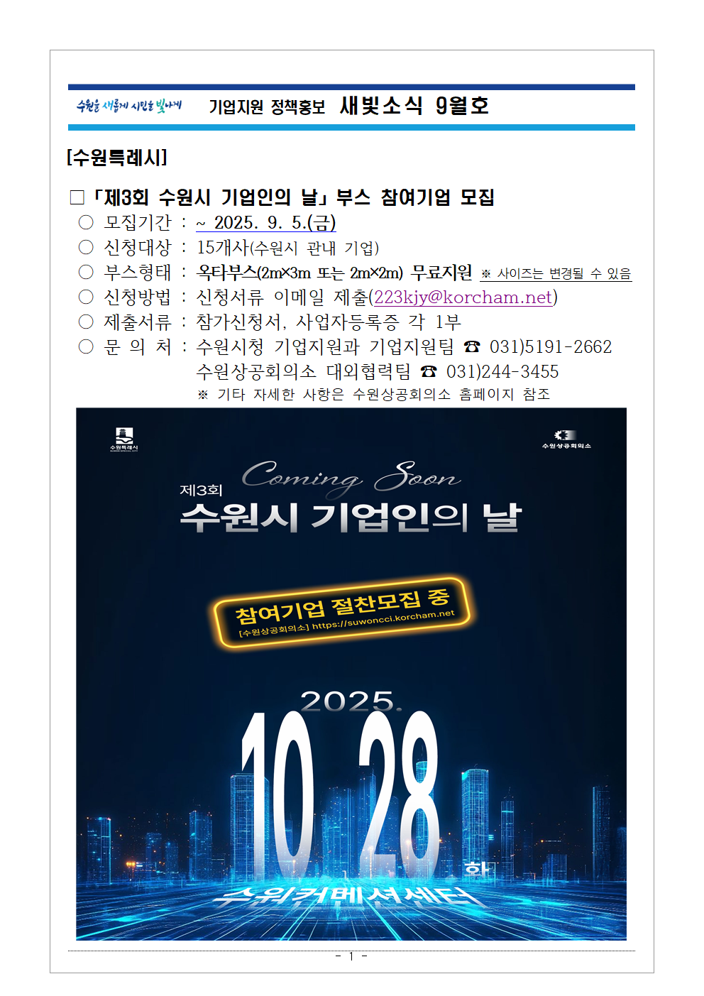 [수원시] 제3회 수원시 기업인의 날 부스 참여 기업 모집 안내