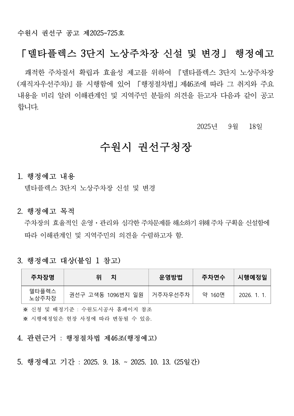 [수원시]「델타플렉스 3단지 노상주차장 신설 및 변경」행정예고