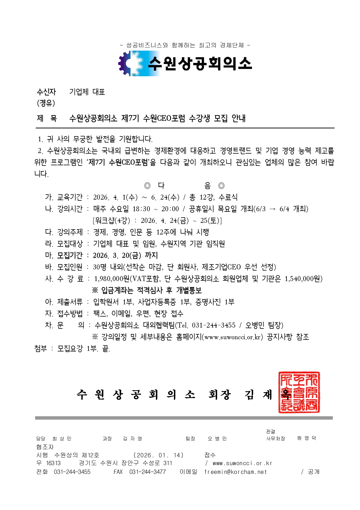 [수원상공회의소] 2026 수원 CEO포럼