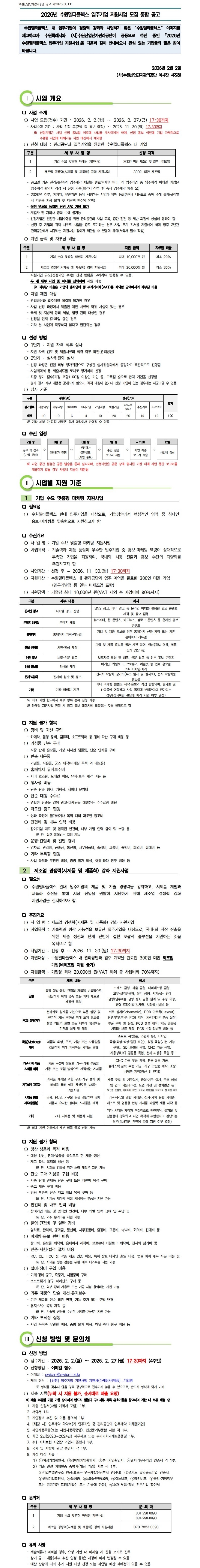 2026년 수원델타플렉스 입주기업 지원사업 통합 공고